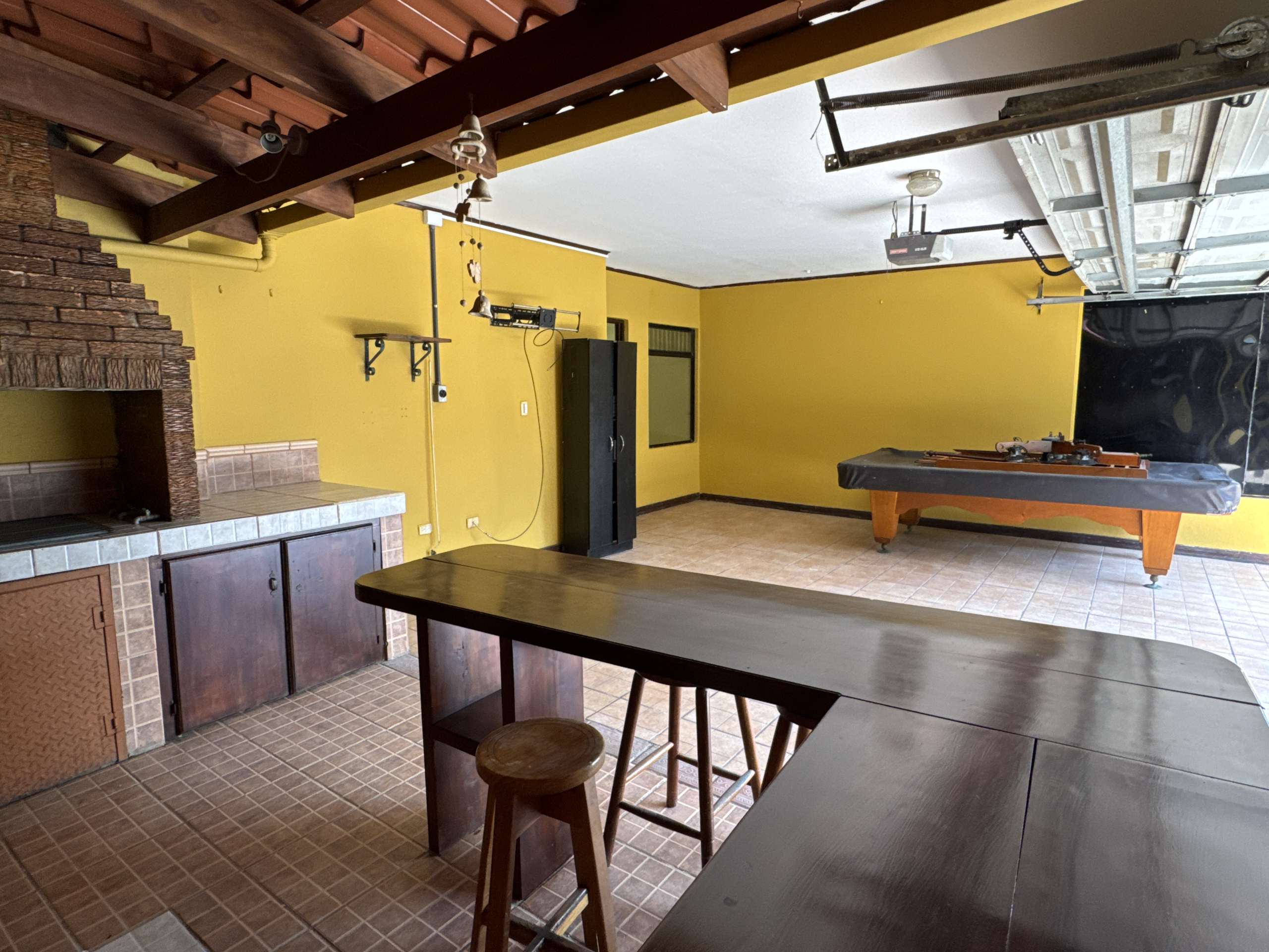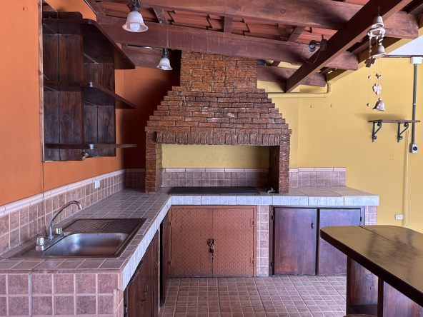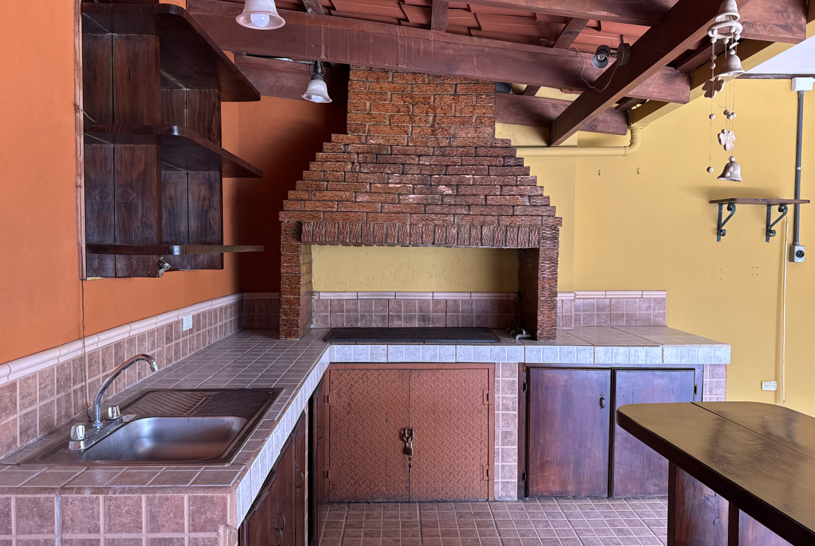 Área de BBQ con chimenea de ladrillo