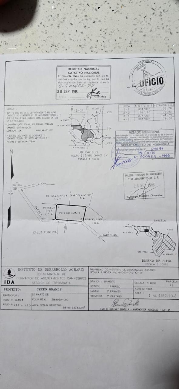 Se Vende de lote en Cartago, Paraíso, Birrisito, Calle Mero.