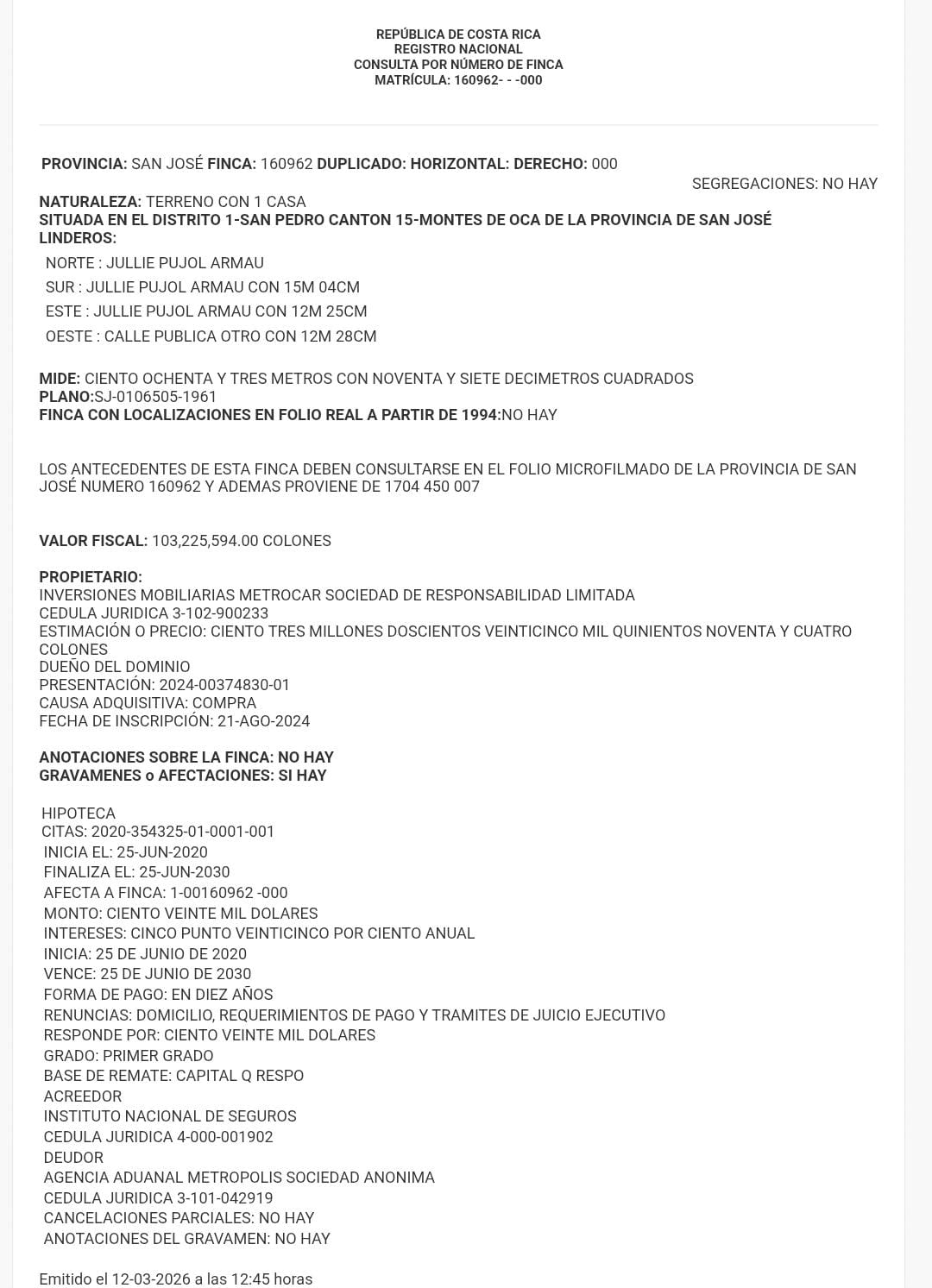 12 m de frente