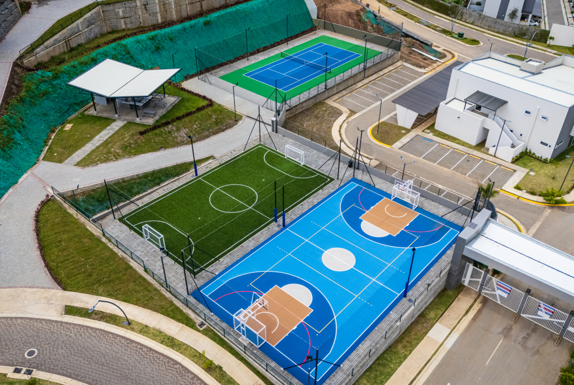 El condominio cuenta con seguridad presencial las 24 horas, cancha de futbol, tenis, gimnasio, piscina, área de juegos infantiles y mucho mas