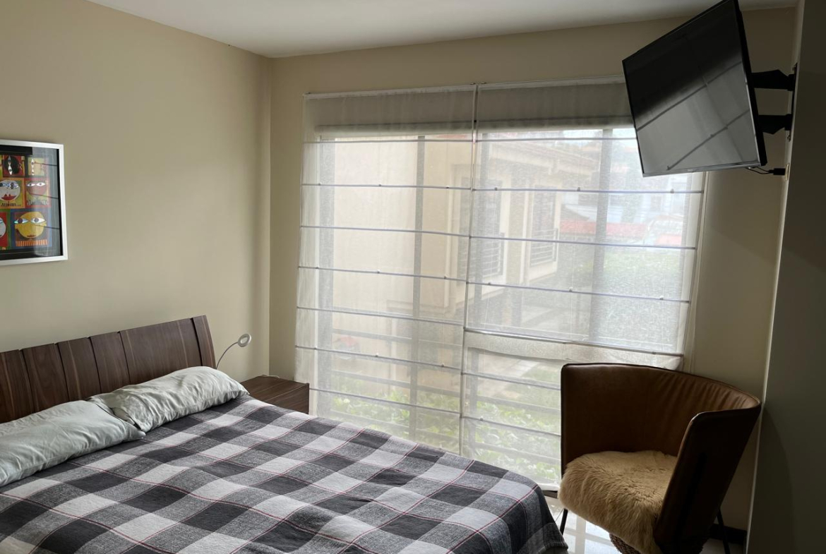 El apartamento se encuentra en una calle sin salida, dentro de un entorno residencial muy seguro y con excelente ubicación, cerca de supermercados, colegios y farmacias.